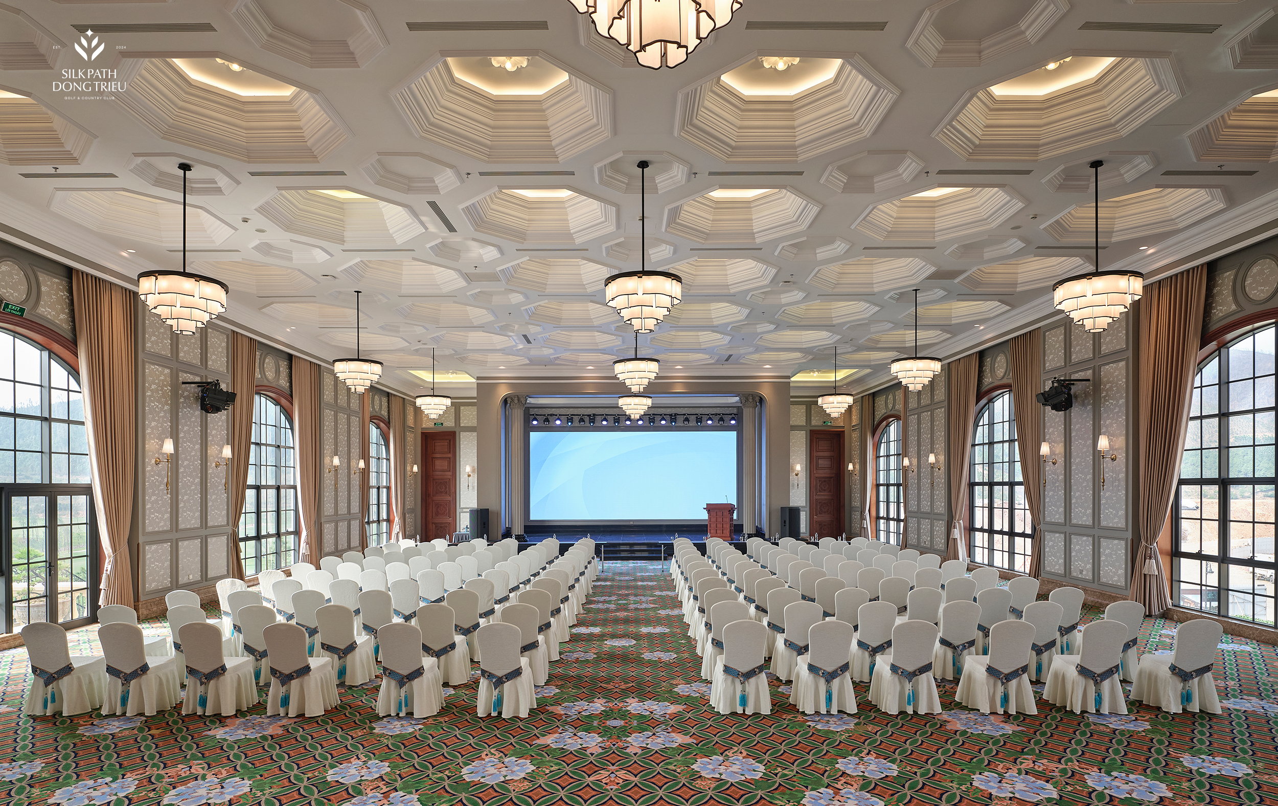 Phòng hội nghị lớn được thiết kế sang trọng, lộng lẫy với sức chứa lên tới 450 khách. Nơi đây phù hợp để tổ chức các giải đấu golf, tiệc gala dinner sang trọng hay các sự kiện doanh nghiệp đẳng cấp.