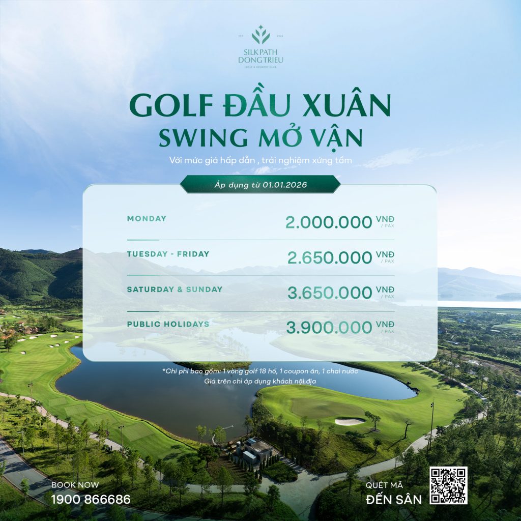 Tại Silk Path Đông Triều Golf & Country Club, chương trình “Golf Đầu Xuân – Swing Mở Vận” chính là lời mời dành cho những golfer muốn mở màn 2026 theo cách khác biệt: chất lượng – tinh tế – và đầy vận khí.